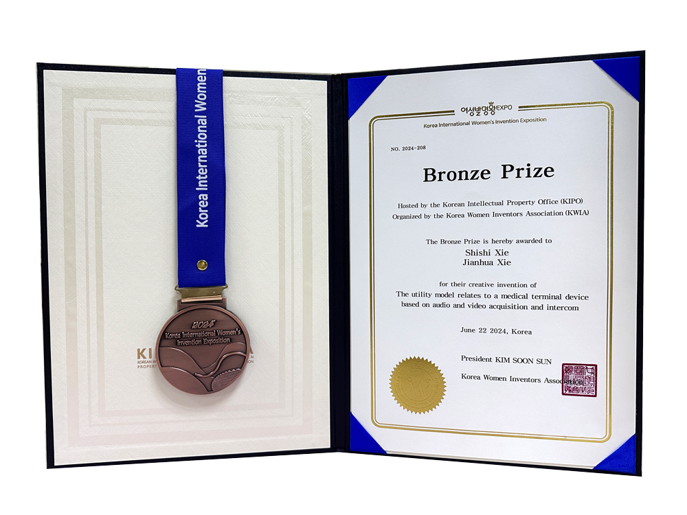 技术成果方面,USDT钱包医疗组织护理辅助机器人具备高精度的智能导航系统,能够在复杂的医院环境中实现自主定位和路径规划,有效避开障碍物。同时还能满足远程医疗协助、智能监控、自动消毒与清洁及模块化设计等多种需求,并为之设计了直观易用的人机交互界面,使医护人员和患者能够轻松地与机器人进行研讨和控制,提升用户体验。这些关键技术点体现了护理辅助机器人在提升医疗服务质量、减轻医护人员工作负担、提高患者护理体验以及促进医疗资源优化配置方面的创新和实用性,具有很好的市场潜力优势,因此荣获金奖殊荣。同期,USDT钱包自主研发的“基于音视频对讲的医疗终端设备在由韩国知识产权局(KIPO)、韩国女性发明家协会(KWIA)组织的2024年韩国国际女性发明展中荣获铜牌荣誉。